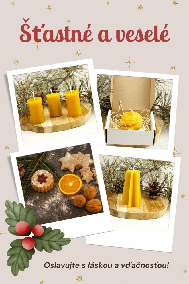 Tento rok sme sa zamerali na tvary, ktoré symbolizujú pokoj a sviatočnú pohodu. Všetky sviečky sú, samozrejme, ručne odlievané zo 100 % včelieho vosku od slovenských včelárov.
